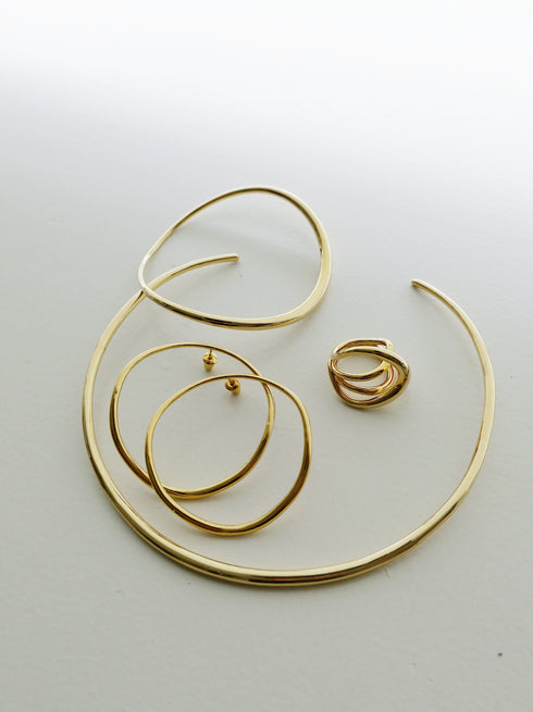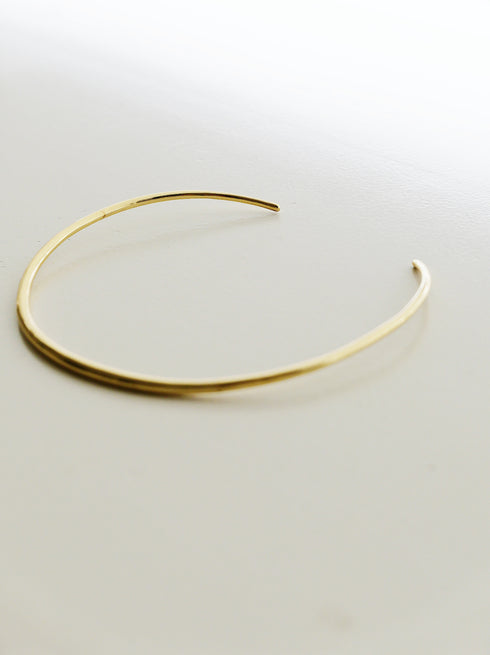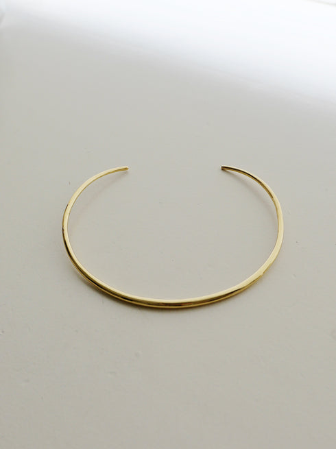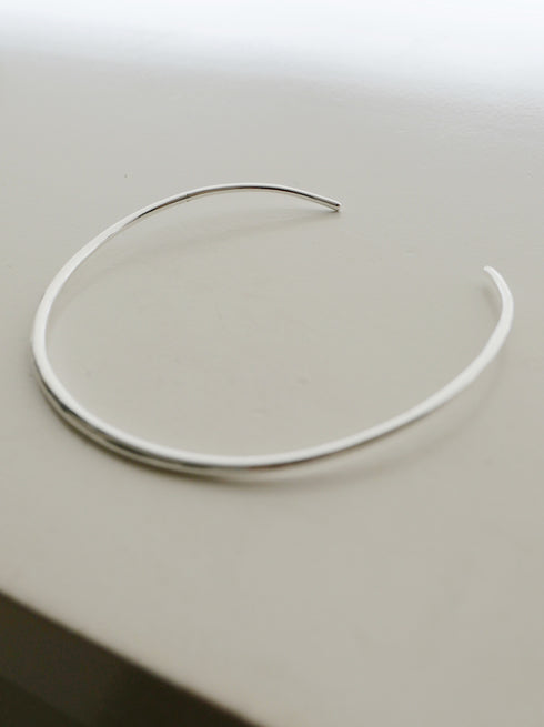太さに強弱のついた線形が軽快で気持ち良く、美しい佇まい。首元に沿うような動きのあるフォルムです。シンプルなドレスやたっぷりしたニット、Tシャツなどのカジュアルにも手軽にお使いいただけるチョーカーです。さっとつけられる手軽さも嬉しい。ロングネックレスとの重ね付けもバランスよくしていただけます。