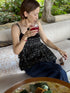 様々な種類の糸を織り交ぜたファンシーな表情が、かっちりしすぎないラフでこなれた印象。トップの位置をあえて下に下げ、大人っぽさと抜け感を持つデザインは甘さを抑えた絶妙ペプラム。下にカップ付きのキャミを着て軽やかに、タンクトップやTシャツを合わせてカジュアルにも着こなせる。