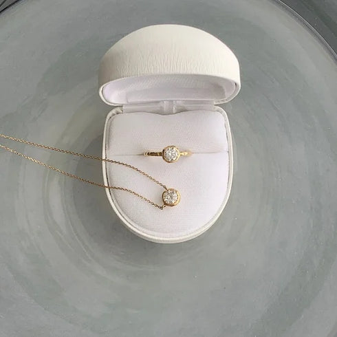 0.7カラットの贅沢を普段使いできる柔らかな雰囲気と嫌味のない輝きは、さりげなく目を惹きます。