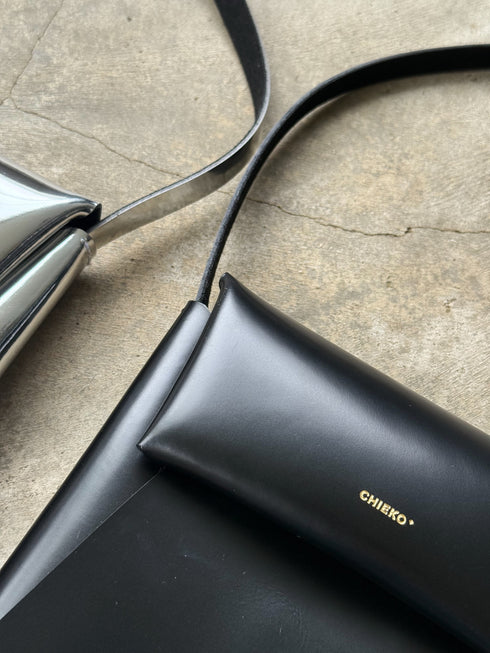 直線とカーブのバランスが絶妙なバッグはリュクス感に溢れる目を引くバッグ。スマホとミニ財布だけ入る、シンプルで洗練されたバッグ。